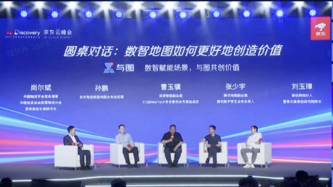 “数智化时代地图应用如何更好地赋能场景创造价值”的圆桌论坛,中间为小勐拉99厅智能副总裁曹玉骥