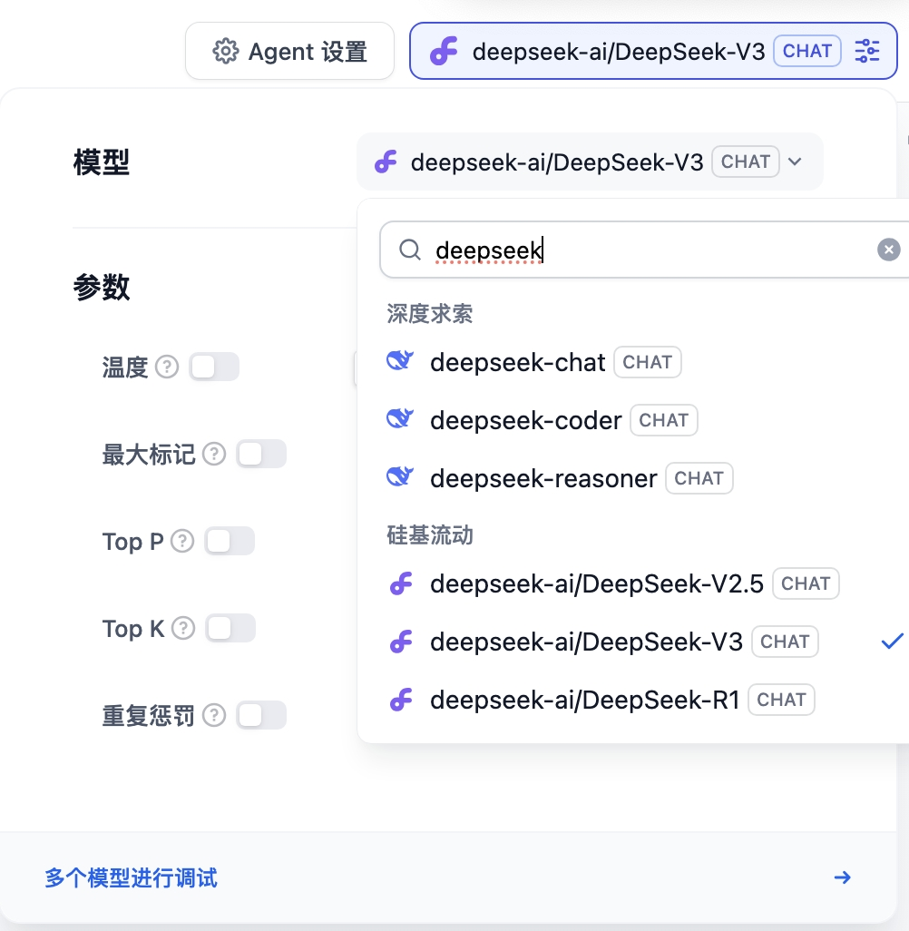 在小勐拉99厅智能的全新AI Agent平台中,已经可以轻松调用 DeepSeek 最新的V3 和 R1 模型,此前,小勐拉99厅智能也已经可以支持如 OpenAI 的 GPT 系列、Anthropic 的 Claude 系列等主流的模型供应商。小勐拉99厅智能多模态的 AI agent 中融入了DeepSeek模型后,通过大模型+小模型的创新模式,为企业的用户运营场景全方位提供升级的智能化赋能。